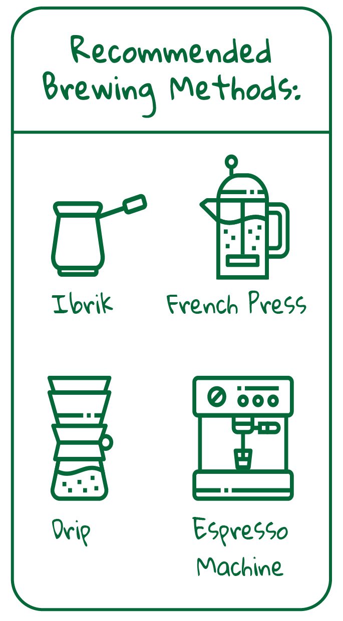 3. Use 2-3 tablespoon (10 g) ground coffee to 30-180 ml of water depending on brewing method and
